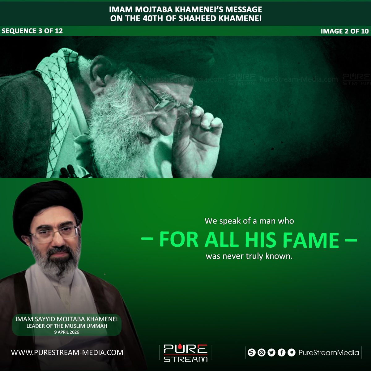 “Everyone must know the truth; Imam Hasan al-Mujtaba (A)’s peace treaty was just as valuable as his noble brother, Imam Husayn (A)’s martyrdom. Imam Hasan (A)’s peace treaty contributed to Islam just as much as Imam Husayn (A)’s martyrdom did; or maybe even more than that.”